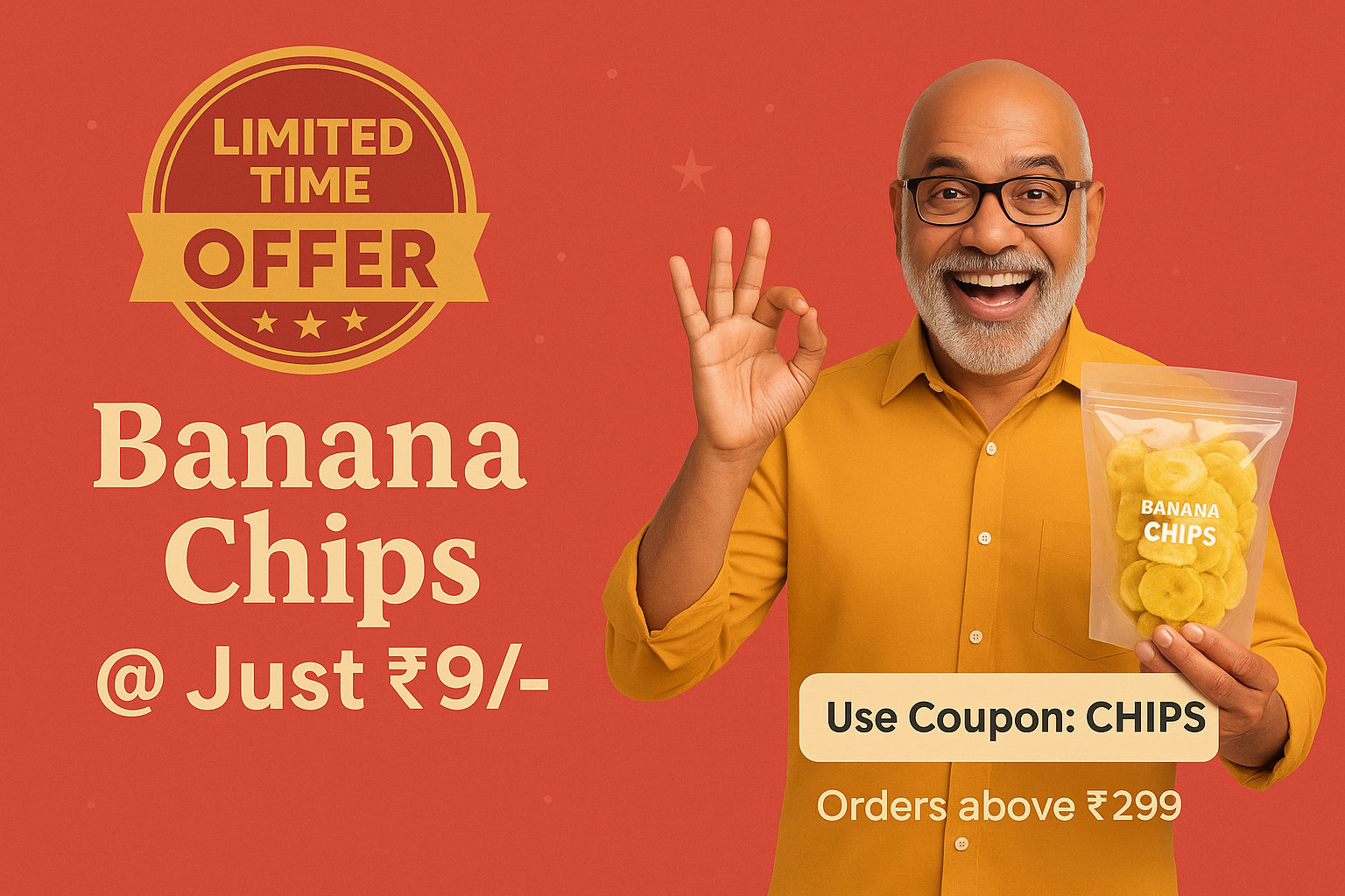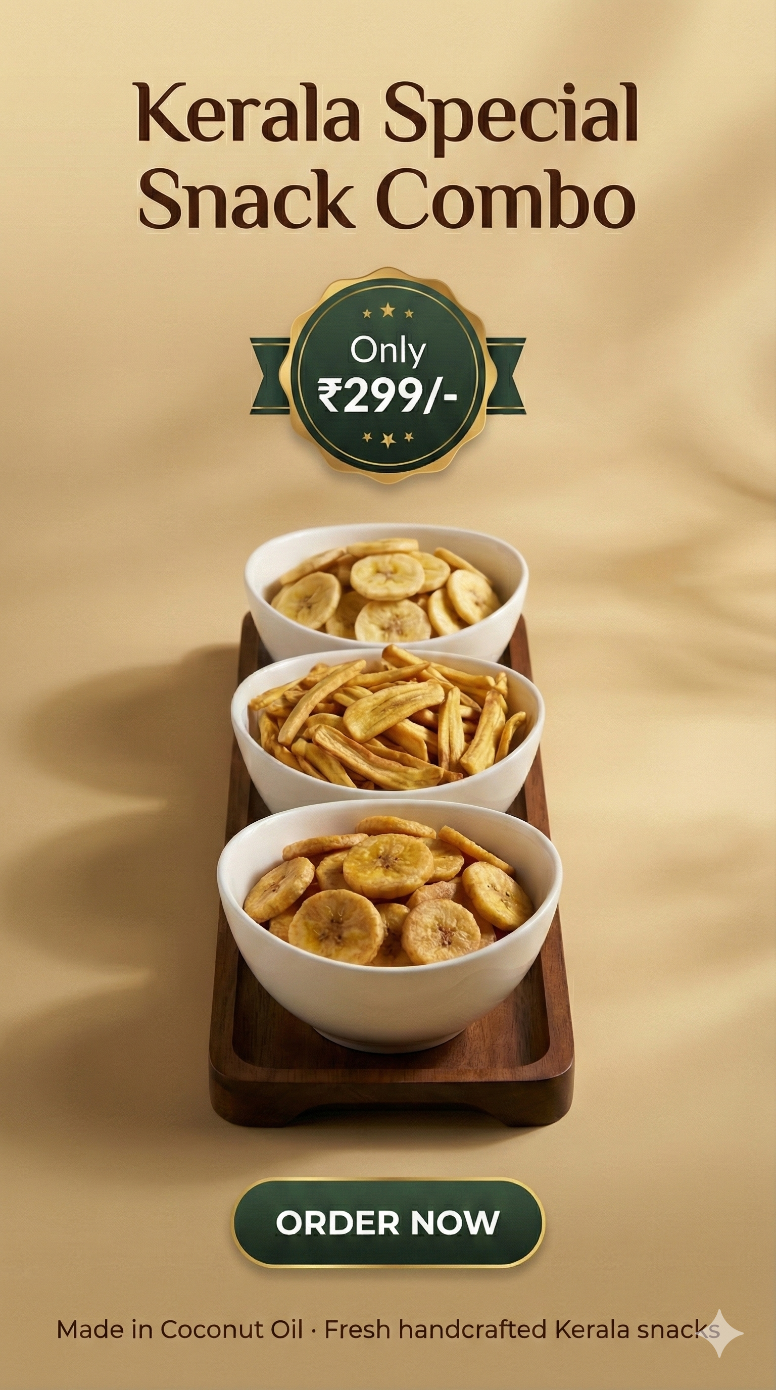 Kerala snack combo has top quality Banana Chips, Jackfruit chips and Ripe banana chips